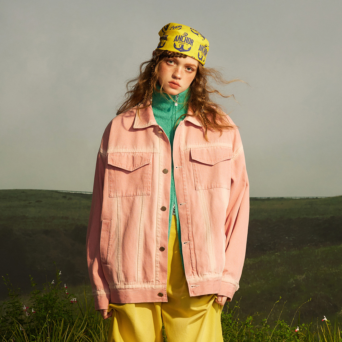 Denim Jacket Loose Pink Youth Outerwear for Men and Women W0299