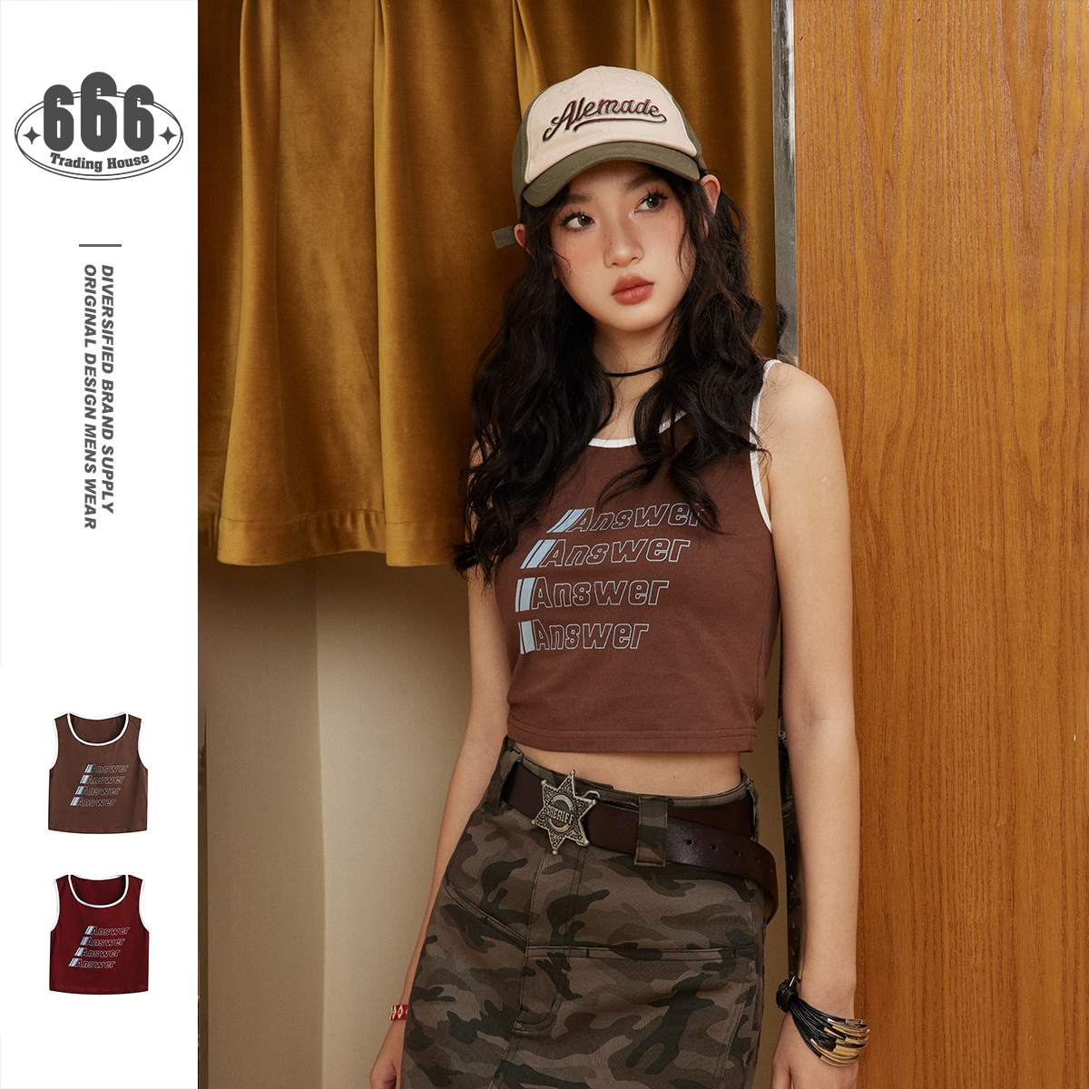 Printed Navel Short Vest Sleeveless T-Shirt Men's and Women's Slim Tops T139
