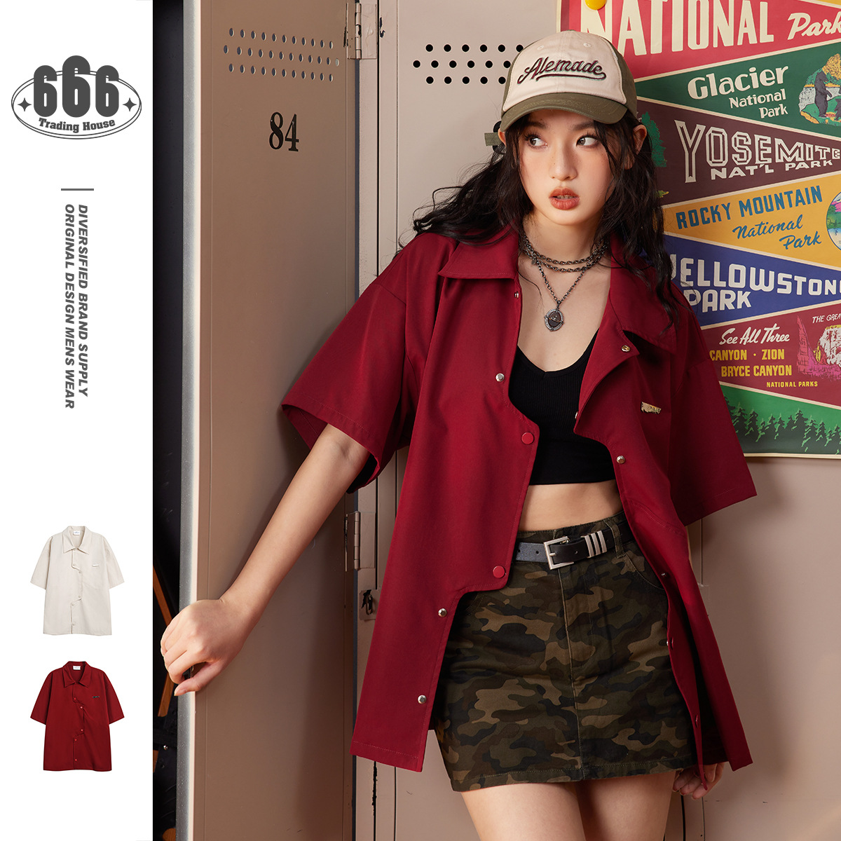 Niche loose casual short-sleeved shirt men's and women's tops summer jacket CS61