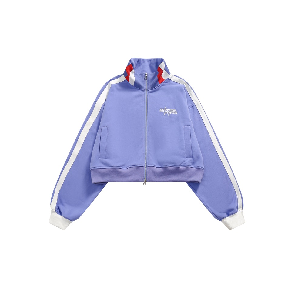 Striped cropped sports jacket slim fit stand collar coat top W40